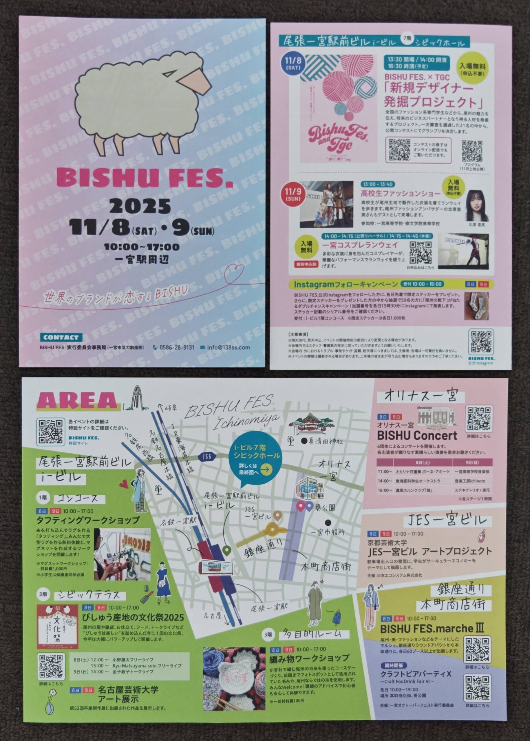 TOP NEWS BISHU FES. NEWS 2025.10.22 BISHU FES.のパンフレット 2025年11月8日(土)9日(日)開催のBISHU FES.。市民企画・運営の「BISHU FES.marcheⅢ」… 2024.10.01 BISHU FES. 2024 (HP) BISHU FES.marcheは、BISHU FES.のイベントの一つとして開催されます。 そのBISHU FE… 2024.08.30 BISHU FES.開催公開記事 2024.8.29中日新聞尾張版 BISHU FES.のことが公開され新聞に掲載されました。 尾州フェス 見て買って 一宮市1… 2023.12.01 BISHU FES.の人出 令和5年11月28日報道発表 「BISHU FES.」の人出について | 一宮市 開催日時: 202… 2023.11.08 リーフレット納品されました!…BISHU FES.marche 今週末、11月11日(土)12日(日)に開催される、BISHU FES.marche。当日1,000枚配布する… 2023.10.28 BISHU FES.フライヤー BISHU FES.のフライヤー(A5で4ページ)が配付されています。 内容は、BISHU FES.公… 2023.10.15 なまおとライブ in BISHU FES.marche…無料カラオケイベント「フリーカラオケ U30 ステージ」も BISHU FES.marcheでは、BISHU FES.へ来場される皆さんを駅頭でお迎えする意味もあり… 2023.10.14 BISHU FES. 公式特設サイトがオープン 一宮市観光協会による「BISHU FES.」の公式特設サイトが10月10日にオープンしました… 2023.09.30 BISHU FES.marche出店者の皆さんと、ブース配置 2023年11月11日(土)・12日(日)に、一宮市駅前銀座通りで開催されます、第1回BISHU FE… 1 2 > カテゴリー お知らせ (31) ステージ出演者の方へ (15) ブース出展者の方へ (22) BISHU FES. (10) イベント (1) ライブ (4) グッズ (5) 業務連絡~スタッフの皆さんへ (2) アーカイブ・アルバム (2) スタッフ・ボランティア (1)